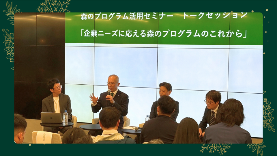 その後、「企業ニーズに応える森のプログラムのこれから」というテーマで、トークセッションにも参加し、ほかのパネリストの方々と貴重な意見交換の機会を賜りました。