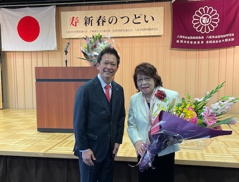 八尾市女性団体連合会 会長の角田 禮子様に花束を贈呈させていただきました。