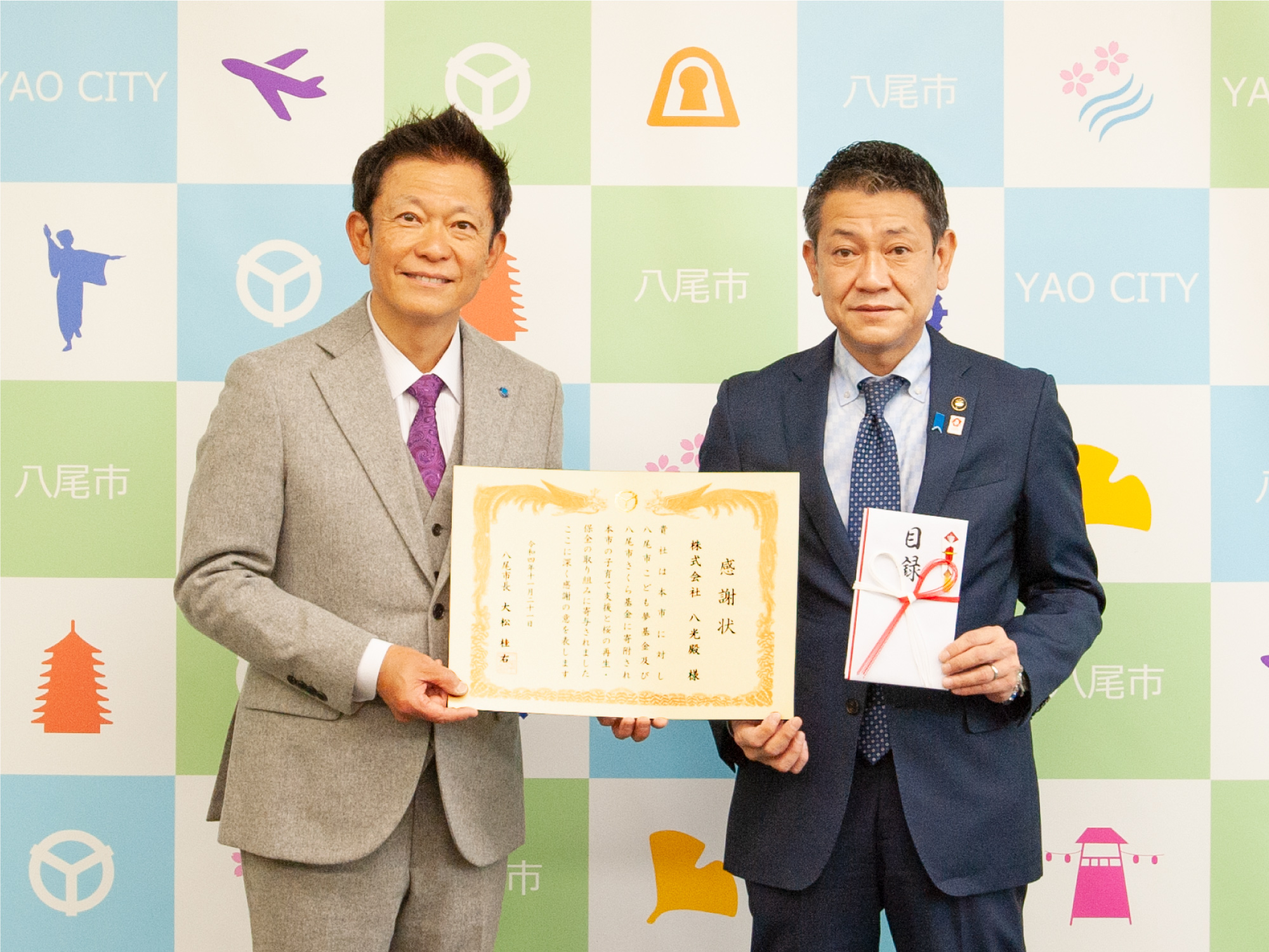 2022年11月21日(月)八尾市役所にて「寄附金贈呈式」が行われましたのでご報告いたします。