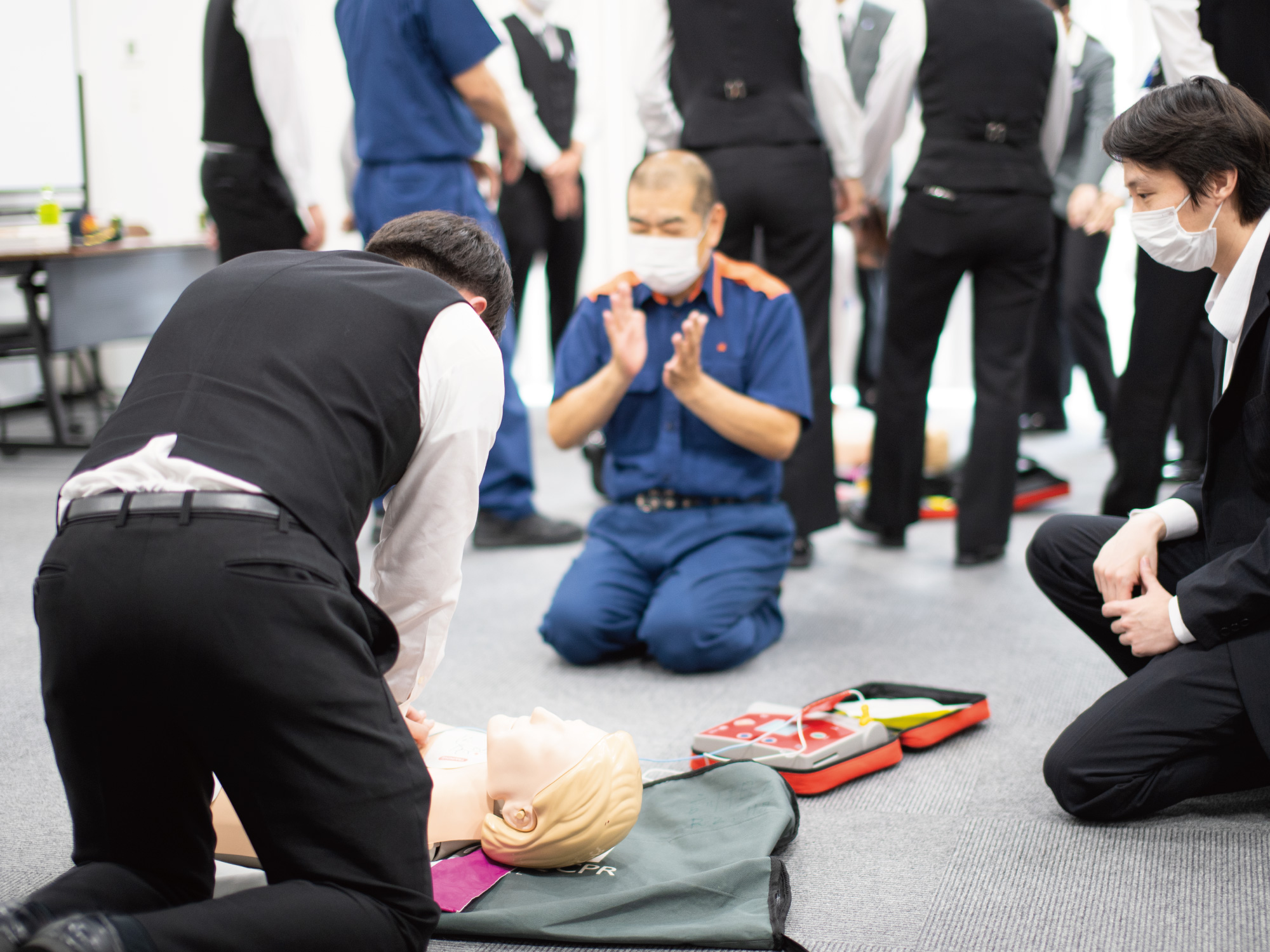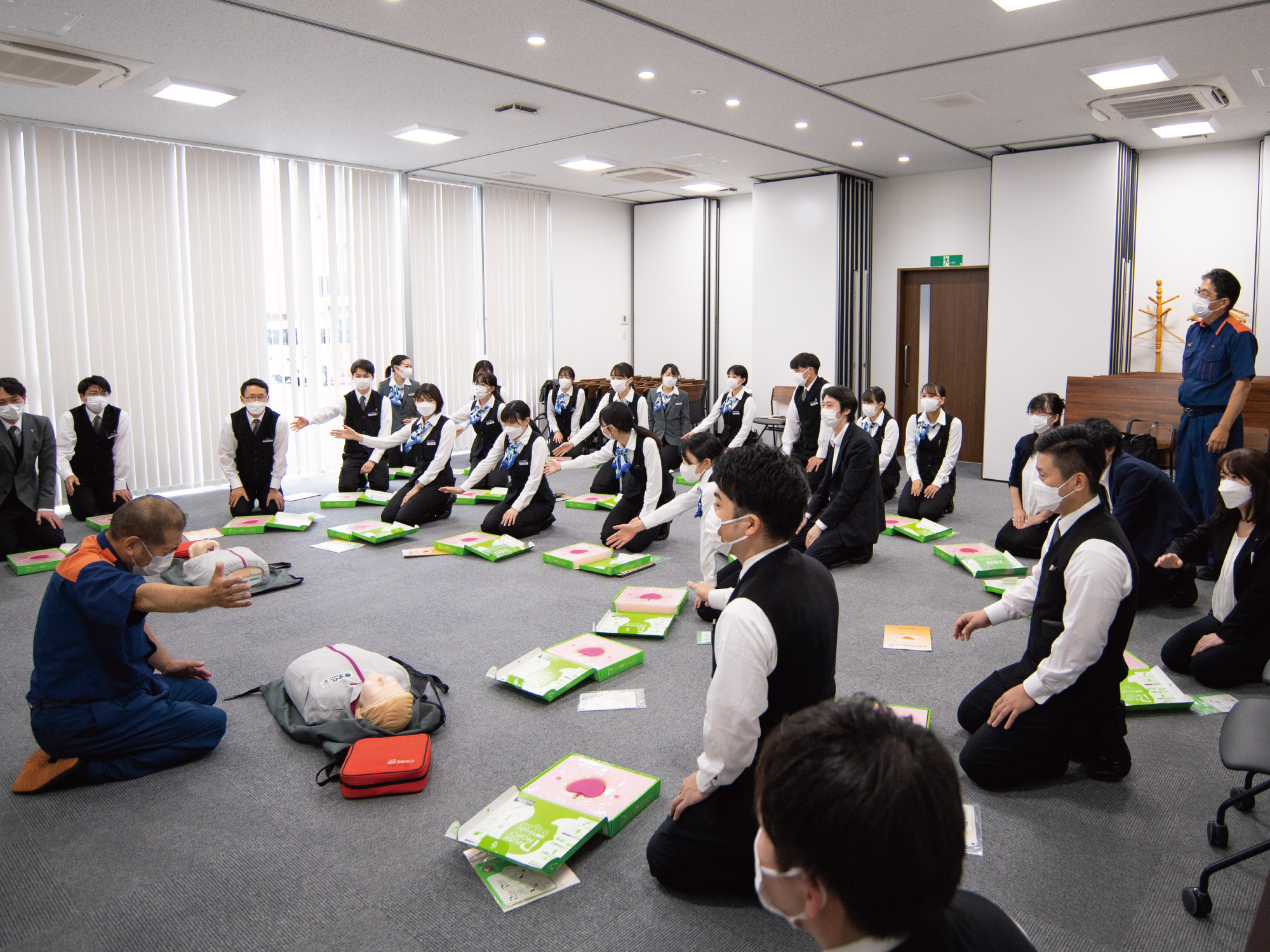 今後も八光殿では、お客様と社員の安全を守るために、積極的に応急手当技能の向上を図る活動を継続して行って参ります。